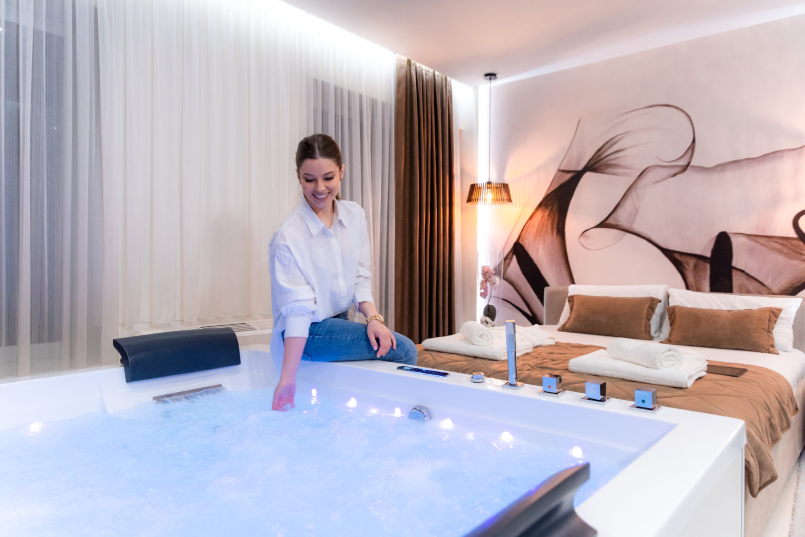 Ova deluks soba je sa bračnim krevetom i ima flat-screen TV, hidromasažnu kadu i klima-uređaj.